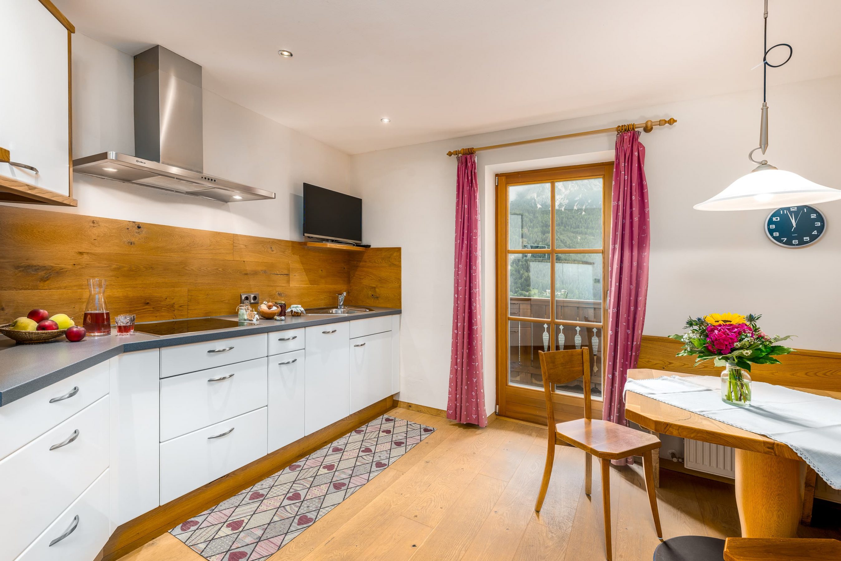 Im Außenbereich des Hofes finden Sie eine Liegewiese und eine Grillmöglichkeit. Die jüngsten Feriengäste dürfen sich darüber hinaus auf einen Spielplatz mit Schaukel, Rutsche, Sandkiste, Trampolin und Spielhaus freuen. Ein Parkplatz ist selbstverständlich vorhanden und bei schlechterem Wetter den Tag mit Spielen oder Lesen verbringen. Auf Wunsch stellen wir Ihnen eine Kleinkinderausstattung mit Kinderbettchen und Hochstuhl zur Verfügung. Vom Balkon oder der Terrasse Ihrer Ferienwohnung haben Sie eine fantastische Aussicht auf Südtiroler Bergwelt.